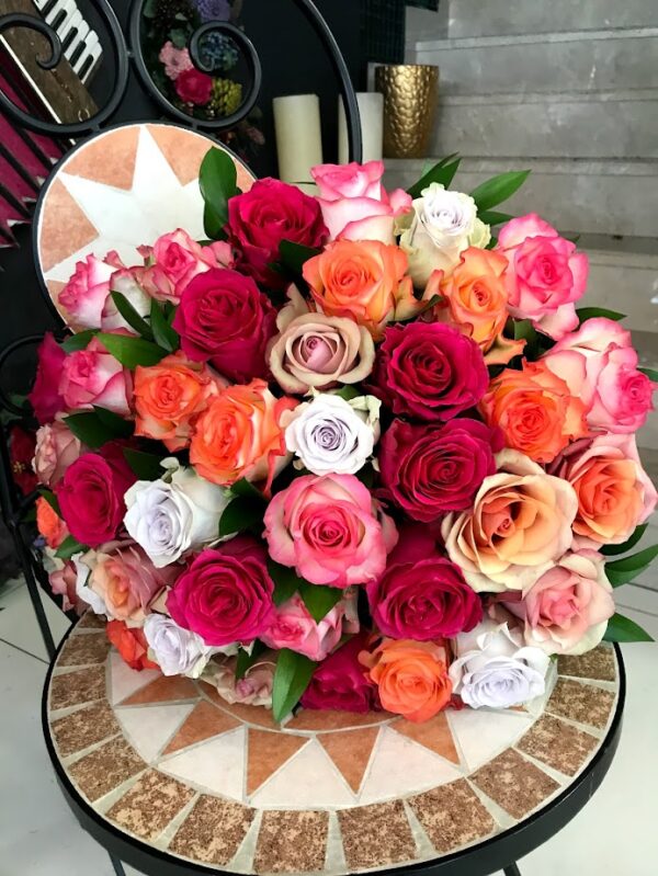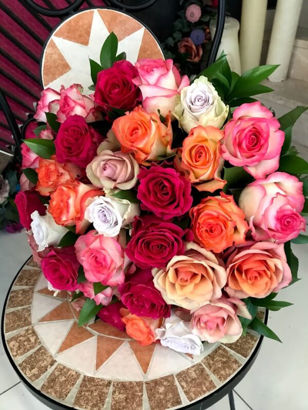 This Colorfull Roses bouquet is bursting with the vibrant colors of nature and is full of fresh, natural beauty. The different colored roses, each with its own unique hue, transform this bouquet into a work of art.